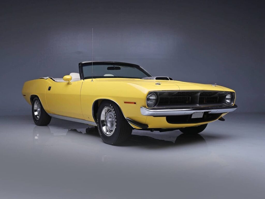 For traditionalists at Barrett-Jackson Scottsdale, authentic muscle cars deliver the nostalgia and investment case. The 1970 Plymouth ‘Cuda Convertible in Hi-Impact Lemon Twist Yellow represents one of the rarest examples from the muscle car era – a rotisserie restoration powered by the legendary 440 cubic inch Six-Barrel V8 with a 4-speed manual. Of the 29 convertible Cudas produced with this engine configuration in 1970, only 17 received the desirable 4-speed manual, making this one of approximately 17 examples still in existence. With its original Broadcast Sheet and Galen Govier documentation, this car’s authenticity is beyond question.